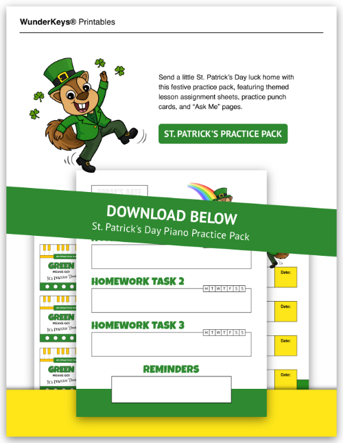 Together, these tools create a simple practice system that keeps momentum going long after the lesson ends, while leaning into the playful St. Patrick’s Day excitement your students are already feeling.
