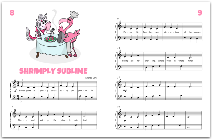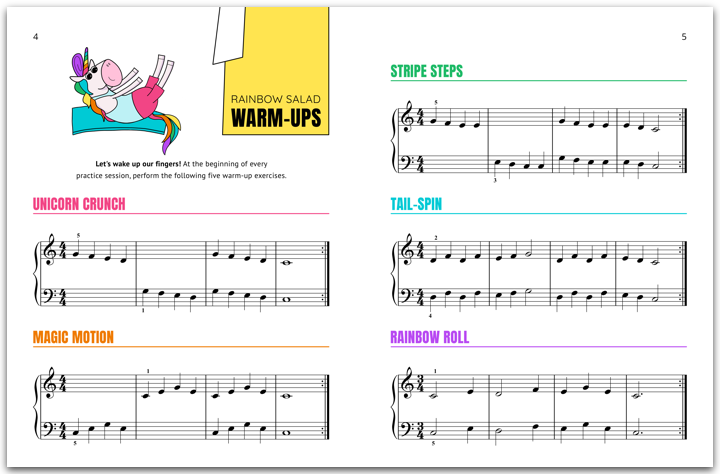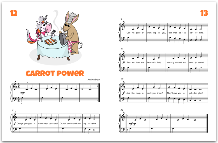 As mentioned above, today’s game can be used alongside The Rainbow Salad Songbook. Our newest release in Andrea and Trevor Dow’s Very Useful Piano Library will be a favorite among your unicorn-obsessed piano students.