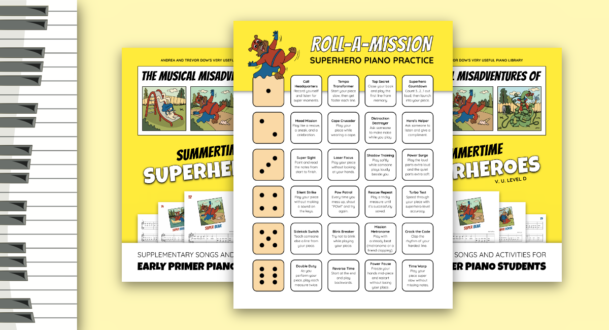 Roll-A-Mission Piano Challenge: A Superhero Practice Printable