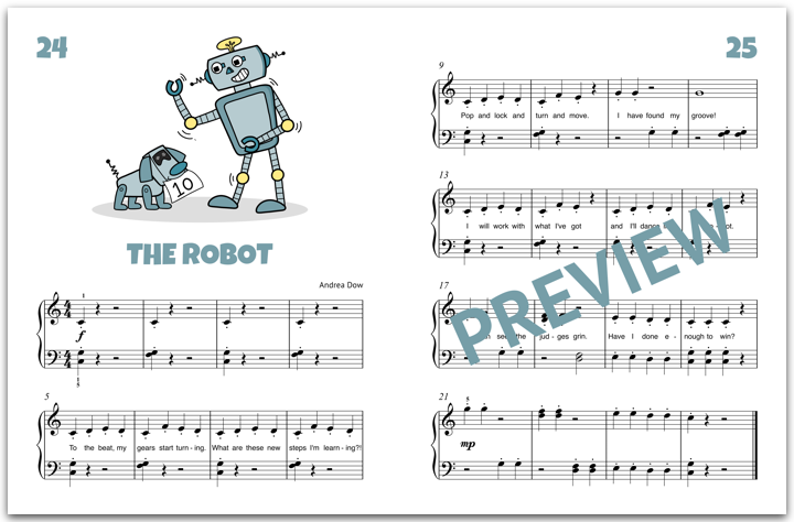 Have you had a chance to check out our newest piano book, Robots Can’t Rumba, V. U. Level N?