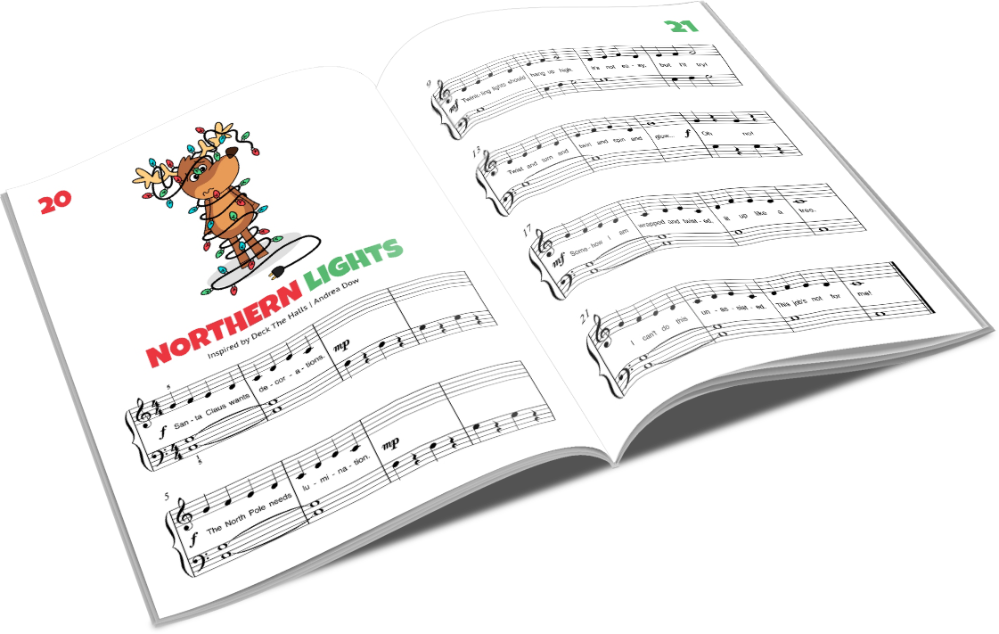 Whether it’s eighth-note rhythms, tricky hand movements, or unfamiliar grand staff notes, most Christmas tunes don’t care about pedagogical progress.