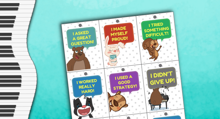Today’s Piano Lesson Brag Tags (download using the link at the bottom of the post) are intended to be used with piano students between the ages of 4 and 9 but can be used with any child who needs a little “pick me up”. They encourage the development of Growth Mindset and are a tangible way to help your students set learning goals.