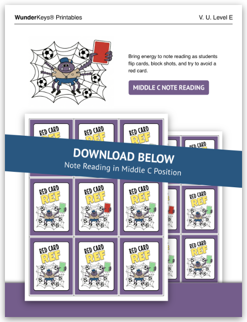 Red Card Ref is a printable game that makes Middle C note reading feel like a high-stakes match. Instead of just naming notes, your students get to be the goalies. They have to scan the field of cards and “block” the foul notes that don’t match their labels. It is a high-energy way to build visual accuracy while the clock is ticking.