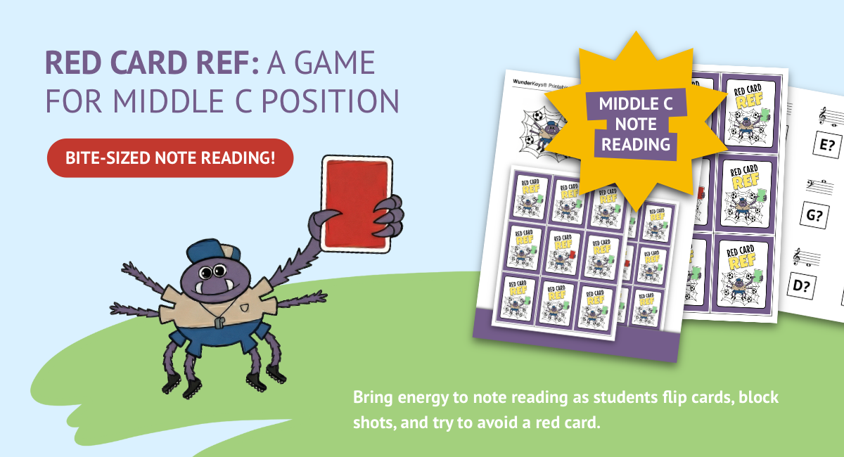 Red Card Ref is a printable game that makes Middle C note reading feel like a high-stakes match. Instead of just naming notes, your students get to be the goalies. They have to scan the field of cards and “block” the foul notes that don’t match their labels. It is a high-energy way to build visual accuracy while the clock is ticking.