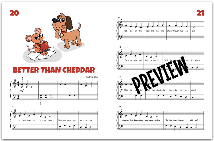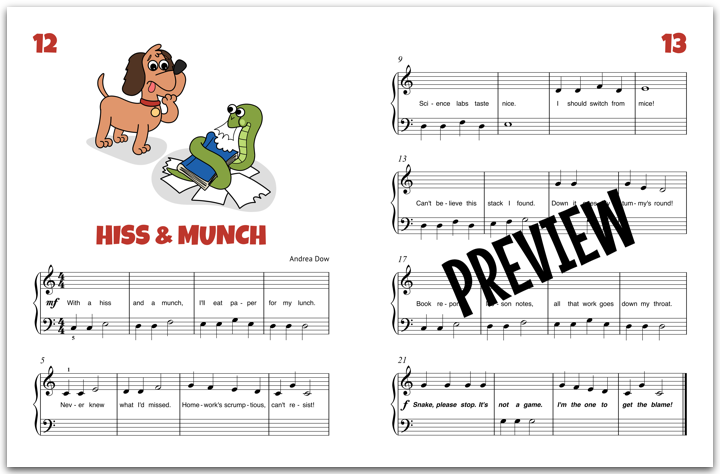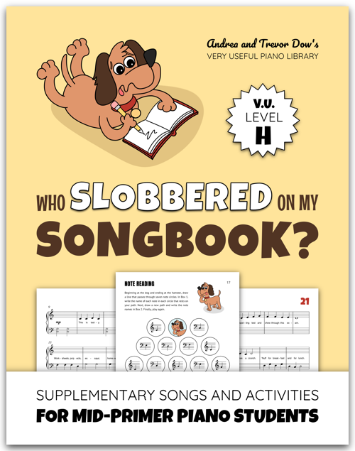Composed for mid-primer piano students, Who Slobbered On My Songbook? is packed with piano pieces and activities that reinforce playing in the C 5-finger scales.