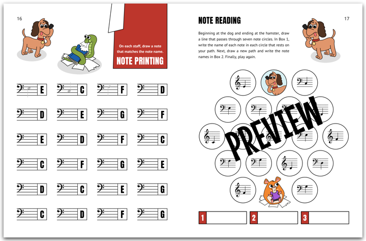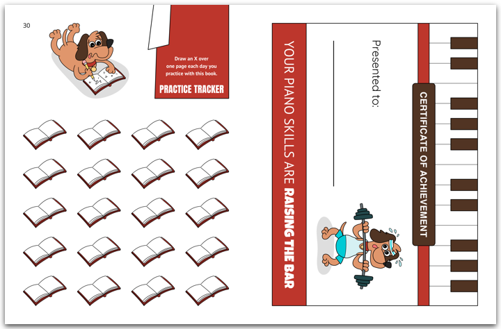 Inside you will discover 7 piano solos, a teacher-student duet, warm-up exercises, note reading games, sight-reading and rhythm activities, a practice tracker, and a certificate.